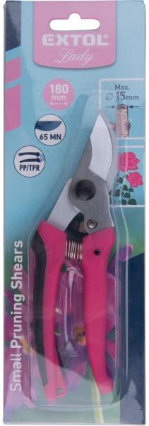 EXTOL LADY 3 év metszőolló, virágokhoz, max. : 15 mm átvágás, hossz. : 17 cm, mellévágó, rózsaszín, Extol Lady (9272)