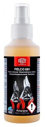 A FELCO 981 egy rendkívül hatékony oldószer, amelynek segítségével könnyen eltávolítható a gyanta és egyéb szennyeződés a metszőolló pengéjéről. Végtelenül egyszerűen használható pumpás kiszerelésének köszönhetően. Csak permetezze rá a felületre, hagyja pár másodpercig hatni és már törölheti le a szennyeződést metszőollója pengéjéről. Gazdaságos megoldás, PTFE, szilikon vagy VOC oldószerektől mentes, biológiailag lebomló. 110 ml