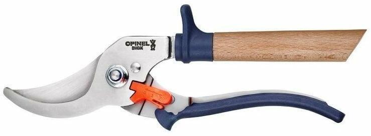 Az Opinel Scissor Blue kerti olló robusztus pengével rendelkezik, amely korrózióálló 12C27 rozsdamentes acélból készült. A fogantyú természetes lakkozott bükkfából készült, kék színű. Az ollók háromfokozatú zárral rendelkeznek, 3 pozícióban az ágak vastagságtól függően (zárt, keskeny, széles helyzet). Fesztáv: 20 cm