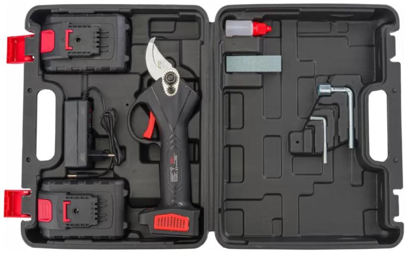 A 30 mm vastagságú és 42 mm munkahosszúságú, erősen edzett rozsdamentes acél pengékkel ellátott, akkumulátoros metsző ágak és cserjék vágására.