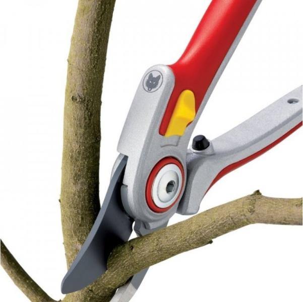A gondozásmentes beépített rugó, melynek a vágófejbe való beépítése egyedülálló, azt jelenti, hogy nem piszkolódik, nem akad bele semmibe és elveszni sem tud. A 30°-ban hajlított vágófej kíméli az izülteket és az alkart, így nem kell túlfeszíteni azt. A professzionális, erős alumínium szárak a sima műanyag betétekkel belesimulnak a tenyérbe. Mint az összes WOLF-Garten Professzionális metszőollónál, a kopóalkatrészek itt is cserélhetőek.